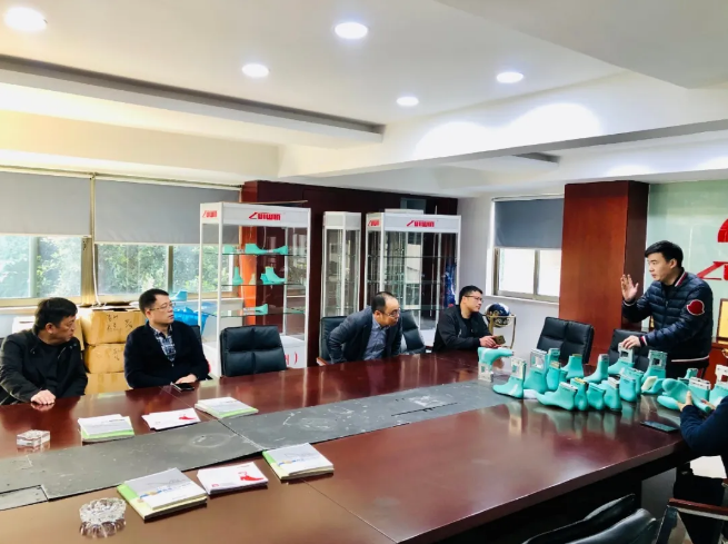 2020年12月4日,温州市鹿城区全一凡区长、统计局陈翔俊局长等一行领导莅临鹿艺鞋材进行参观指导。鹿艺鞋材-孙总携公司管理层共同接待,并进行会议
