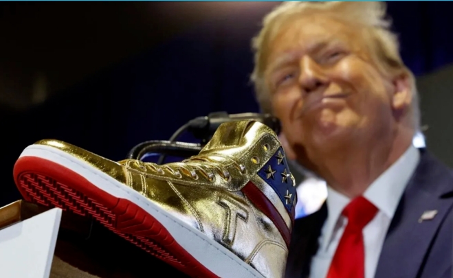 这一次,美国前总统也成制鞋业的同行了,有意思!被罚25亿,美国前总统川普推出全新运动鞋品牌被抢购一空2月16日,美国前总统川普刚刚因为官司,